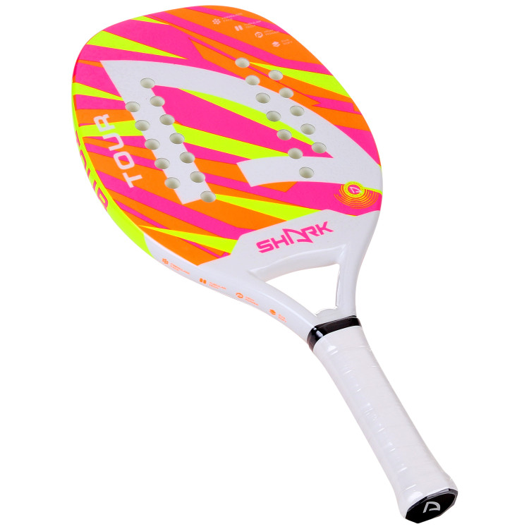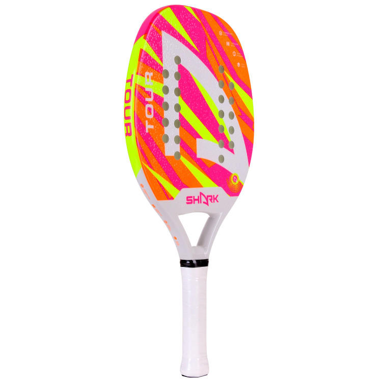 راکت تنیس ساحلی Shark Tour از جنس فایبرگلاس ساخته شده است و دارای سطح زبر با ۲۴ سوراخ میباشد.
