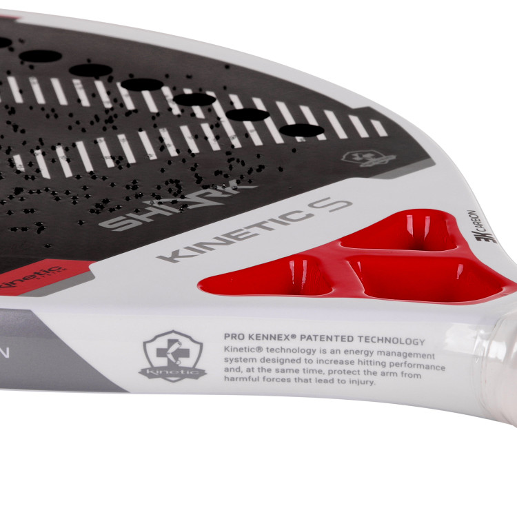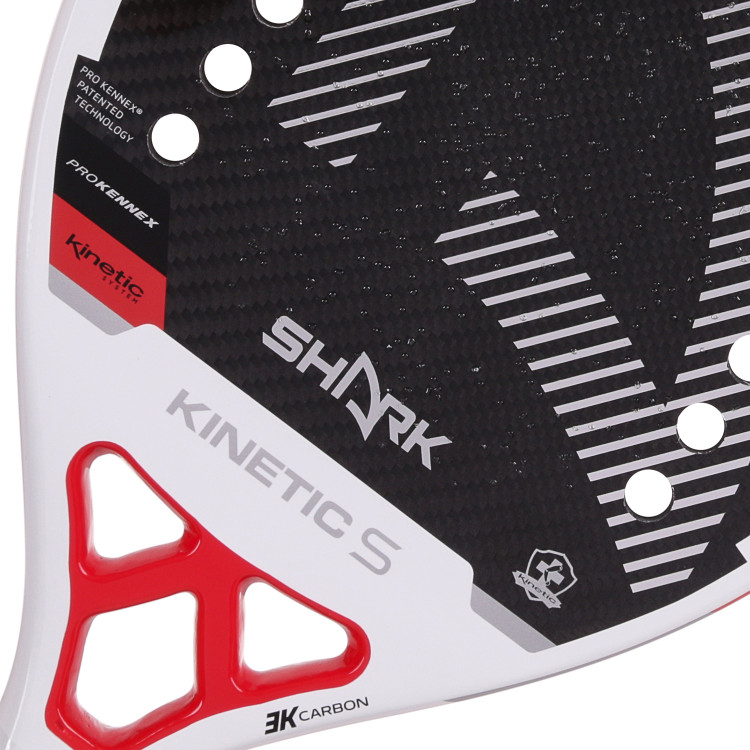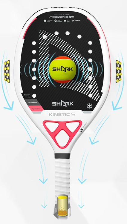 راکت تنیس ساحلی Shark Kinetic X از کربن 3K ساخته شده و با EVA Soft Gray پر شده است، که باعث میشود در عین راحتی، قدرت و دقت بالا داشته باشد. این راکت برای بازیکنان سطح پیشرفته طراحی شده و سطح آن دارای رنگ با دانههای میکروسکوپی است تا هنگام ضربه، چرخش (اسپین) بیشتری به توپ بدهد. همراه آن یک کاور محافظ نیز ارائه میشود.